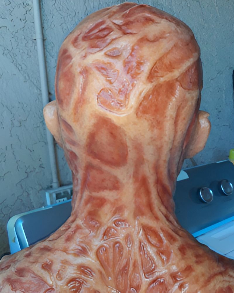 Each feature is sculpted by PolarFX Studio artisans with the same care given to professional movie prosthetics — every wrinkle tells a nightmare.